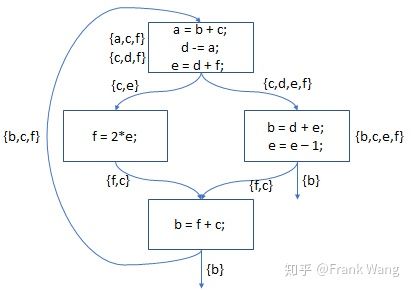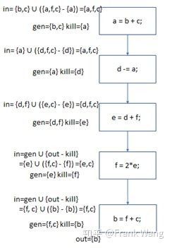 analysis)。活跃变量分析是确定哪些变量在程序点保持活跃的过程。结合控制流图,就是判断变量x在程序点p上的值是否会在流图中的某条从点p出发的路径中使用。如果是,就说x在p上活跃;否则就说x在p上是死的。活跃变量分析是一个后向数据流分析问题,因为当前变量x是否在未来的某个地方被用到,只能通过从后面节点的信息中获知。活跃变量分析的重要用途之一是为基本块进行存储器分配。一个值被计算保存到一个寄存器中后,很有可能在基本块中被使用。如果它在基本块中是死的,就不必在结尾处保存这个值。另外在所有寄存器被占用时,如果还需申请可用寄存器,应该考虑使用一个存储了已死亡的值的寄存器,因为该值无需保存到内存。