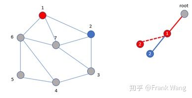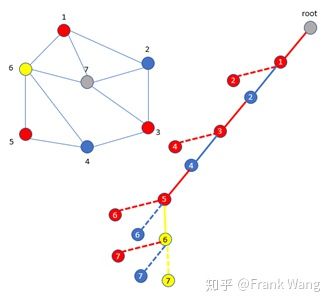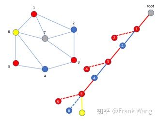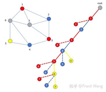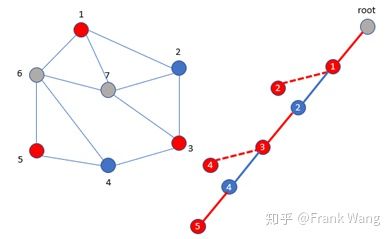 1. 从root节点出发,先给节点1着红色。